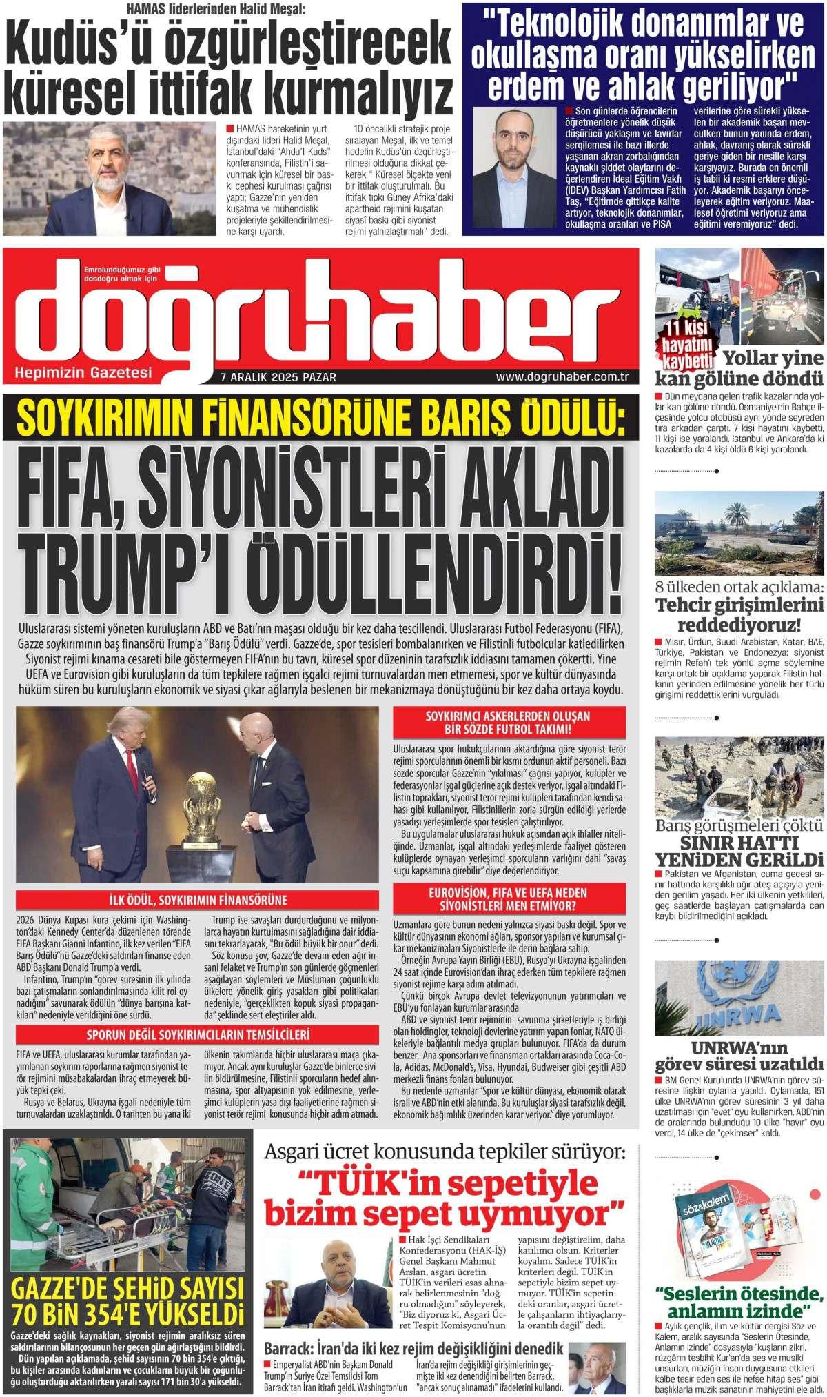Doğru Haber Gazetesi 7 Aralık 2025 Günü Manşeti