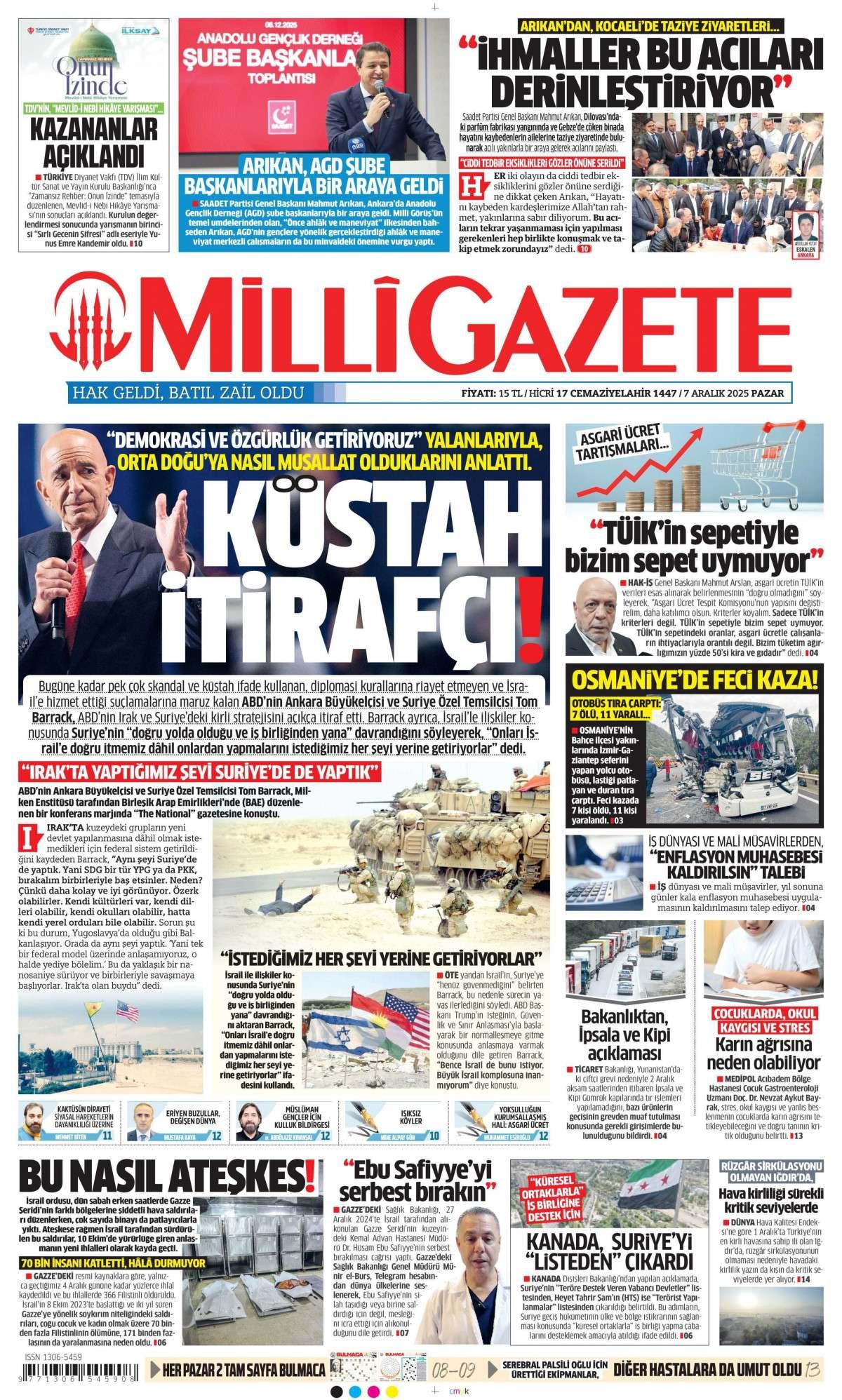 Milli Gazetesi 7 Aralık 2025 Günü Manşeti